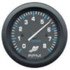 Незапотевающее стекло. 0-8000 об/мин Окружность шкалы 270 градусов. Черный циферблат и черный ободок. Синие деления.